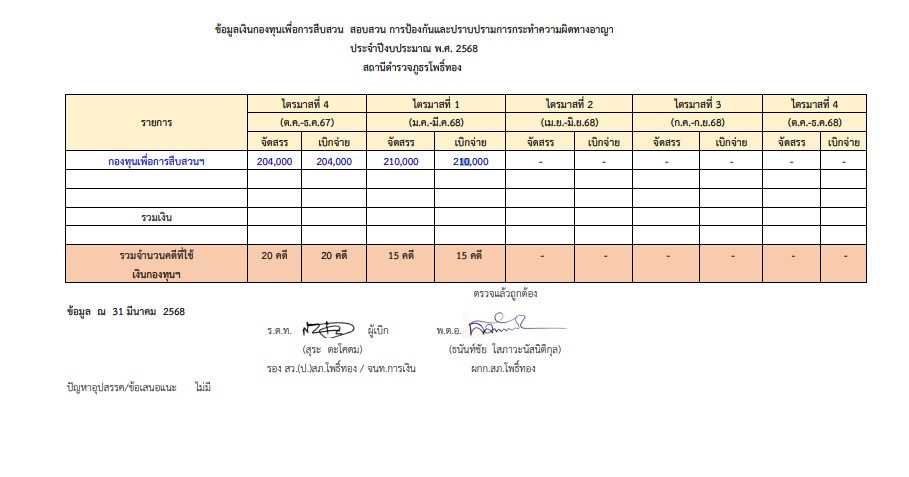 O13-ข้อมูลกองทุนพื่อการสืบสวนสอบสวนสภ.โพธิ์ทอง