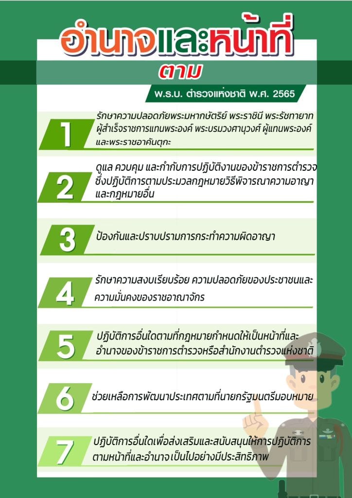 ๕. ปฏิบัติการอื่นใดตามที่กฎหมายกำหนดให้เป็นหน้าที่ของตำรวจหรือสำนักงานตำรวจแห่งชาติ